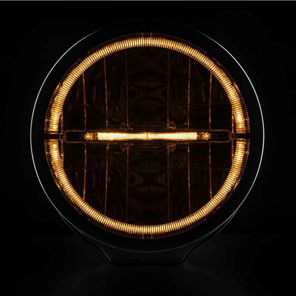 Getöntes Glas + weiß/oranger LED-Standlichtring/-streifen, 67 W, Durchmesser 230,5 x 132 mm, EMV ECE R10