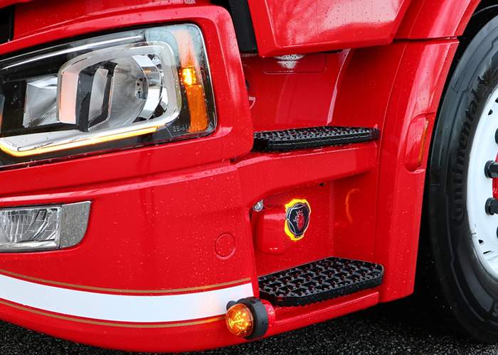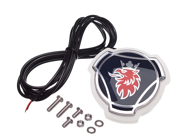 Waterproof Scania Emblem with LED Border Made of Opaque White Acrylic The 3-Meter Cable is now attached to the Base via a Strain Relief Available in Multiple Colors