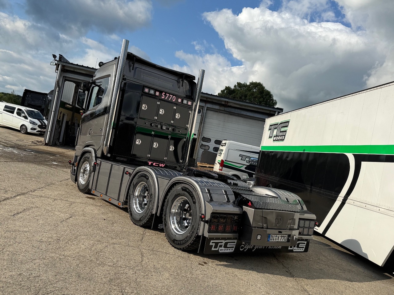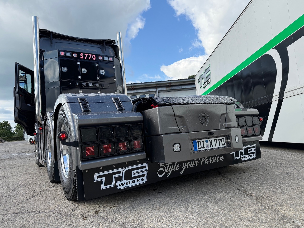 Kotflügel Stoßstange aus Alu für je 4 eckige Rückleuchten, Passend für alle Scania 4er Serie, R1+2, Next Gen Modelle